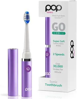 Pop Sonic Electric Toothbrush (Purple) - Travel Toothbrushes w/AAA Battery | Kids Electric Toothbrushes with 2 Speed & 15,000-30,000 Strokes/Minute, Dupont Nylon Bristles