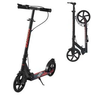 VEVOR Kick Scooter for Kids Ages 8+, Teens & Adults, 2-Wheel Toddler Scooter with Height Adjustable Handlebar, Wide Anti-Slip Deck, Foldable Lightweight Frame for Boys & Girls up to 220 lbs, Black
