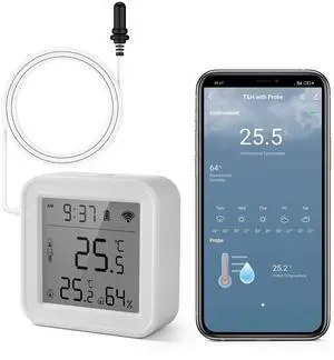 Smart WiFi Temperature Humidity Monitor: TUYA Wireless Temperature Humidity Sensor with APP Notification Alerts, WiFi Thermometer Hygrometer for Home Pet Garage,Compatible with Alexa