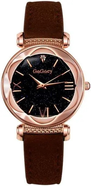 Gogoey Ladies Starry Sky Leather Belt Watch (Brown)
