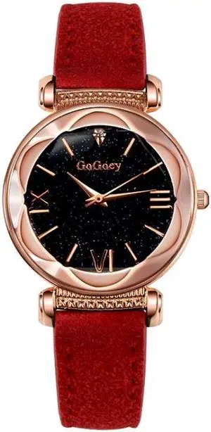Gogoey Ladies Starry Sky Leather Belt Watch (Red)