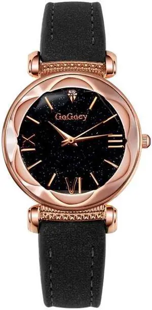 Gogoey Ladies Starry Sky Leather Belt Watch (Black)