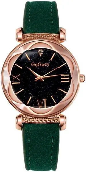 Gogoey Ladies Starry Sky Leather Belt Watch (Green )
