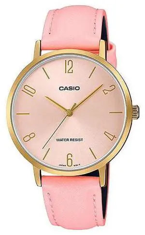 Casio Womens Brown Leather Strap Analog Watch with Gold Dial - LTP-1094Q-9ARDF