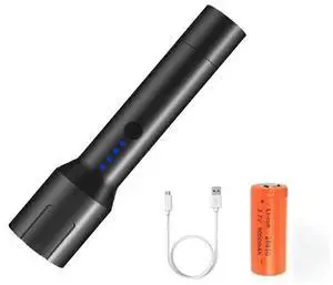 Ecocleanpath 90000 Lumens Rechargeable LED Flashlight, Super Bright Waterproof Torch with Power Bank, Black