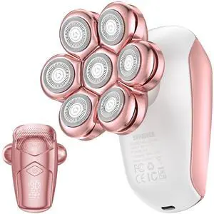 Electric Razors for Women Legs: 7D Floating Head Electric Shaver - IPX7 Waterproof Wet Dry Hair Remover - LED Display & Travel Lock for Body Face Bikini (Light Pink)