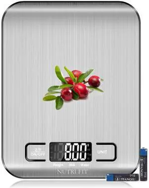 Food Scale, Kitchen Scales Digital Weight Food Grams and Ounces for Weight Loss Baking Cooking of, Max 11lb 1g Increment, Backlight LCD Smart Tare Stainless Steel, Easy to Use, AAA Battery