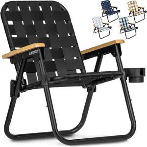 GoSports WOVN Beach Backpack Chair - 9 Styles Available - Premium Folding Camping Chair Black