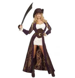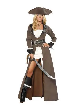 Roma Costume 3pc Deluxe Pirate Queen, Grey/Black, S