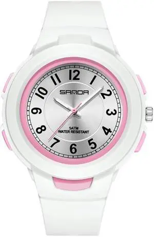 SANDA 6095 Student Sports Waterproof Electronic Watch (White Pink)