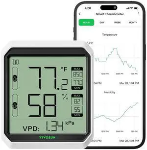 • Features: Smart Hygrometer Thermometer with Sensor Probe, Thermometer with External Probe, +/- 0.1%