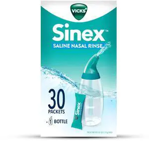 Sinex Saline Nasal Rinse Starter Kit, Drug Free Saline, Flush Out Mucus and Allergens, Fast & Effective Relief for Everyday Congestion from Sinus & Allergy, 1 Bottle + 30 Refill Packets