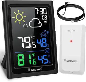 Geevon Indoor Outdoor Thermometer Wireless Weather Station with Color Display, Digital Hygrometer Temperature Humidity Monitor with Alarm Clock and Backlight