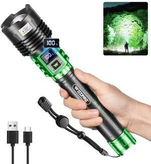 Rechargeable LED Flashlights High Lumens, Super Bright 90000LM Rechargeable Flashlight with LCD Display, 5 Modes & Waterproof Powerful 10000mAh 30H Flashlight for Camping Emergency GreenBrand: Accessory PowerPart Number: SFL042Selling Unit: PackSpecifications: Adjustable Focus, Adjustable Light Modes, Durable, High Lumens, 15 hours, Aluminum, NiMh, 1, 2.5 L x 2.5 W x 11 H inches, waterproof, 1 year., WdtPro, SFL042Model #: 284731701217