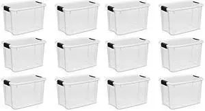 Sterilite 30 Quart Ultra clear Plastic Stackable Storage Tote container with Latching Lid (12 Pack)