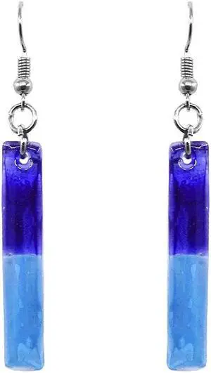Long Rectangle Lightweight Fused Glass Dual Color Dangle Earrings - Womens Fashion Handmade Jewelry Boho Accessories