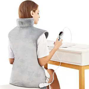 Mia&Coco Electric Heating Pad for Back Neck Shoulders Pain Relief, XL 23"x39" Soft Flannel Wrap, Waist Strap, Fast Heat Hot Therapy 6 Heat Settings, Auto-Off Timer, Machine Washable, Grey