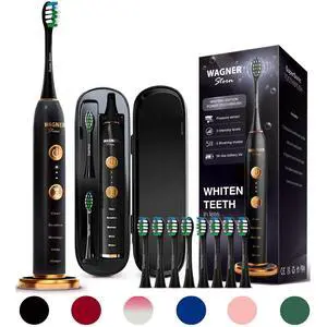 WT8900 Series Electric Toothbrush Whitening & Pressure Sensor, 5 Modes, 3 Intensities, 8 Soft Brush Heads, Rechargeable, Travel Case Included