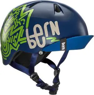 Bern Nino Adjustable Fit Bicycle Helmet for Kid, Navy Blue Zig Zag, Small-Medium
