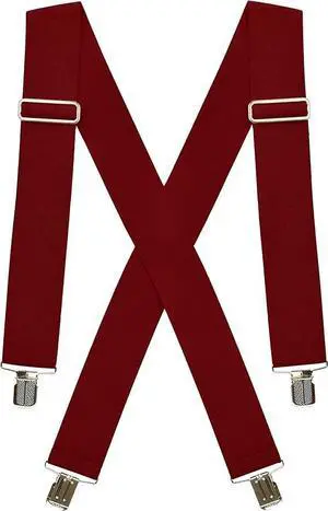 Hold'Em X-Back Mens Suspenders, Adjustable and Stretchable Suspenders for Men, Durable Straight Clip-On Suspenders, Clothing Accessories for Casual and Formal Outfits, Burgundy