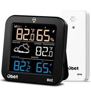 OBET Indoor Outdoor Thermometer Wireless Weather Station with 500FT Range Sensor and Adjustable Backlight Color Display Digital Temperature Humidity Monitor for House Patio