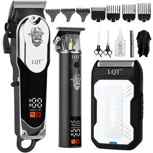 LQT® Men's Professional Hair Clippers KitCordless & Corded Barber Clippers SetGrooming Rechargeable Beard Trimmer with Adjustable Blade Black