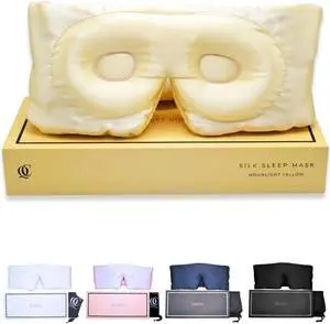 3D Silk Sleep Mask, Total Blackout Liner Blocks Light, Lightweight, 100% Natural Silk Eye Mask, Foam Countour Does Not Crush Ey3D Silk Sleep Mask, Total elashes, Eyelash Sleep Mask (Moonlight Yellow)