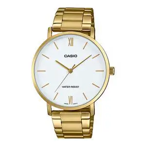 Casio Mens Gold Tone Analog Watch with White Dial - MTP-VT01G-7BUDF