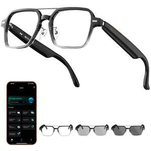 AI Smart Glasses with ChatGPT Bluetooth, Real-Time Translation, Music & Hands-Free Calls, Photochromic Lenses, UV & Blue Light Protection for Men & Women