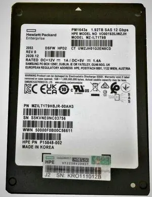 Samsung PM1643a MZILT1T9HBJR-00AH3 SSD 1.92 TB SAS 12Gb/s HPE OEM Refurbished