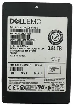 Samsung PM1643 MZILT3T8HALS-00AC3 Read Intensive SSD 3.84 TB SAS 12Gb/s EMC OEM Refurbished