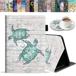 FVAENDHIO Case for Kindle Fire HD 8 & Fire HD 8 Plus Tablet (12th/10th Generation, 2022/2020 Release) - Premium PU Leather Cover with Auto Sleep Wake, Sea Turtle on Rustic Wooden Board