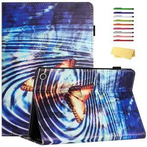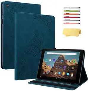 UUcovers Fire HD 10 Case 9th/7th/5th Generation 10.1" (2019/2017/2015), Slim Folio Stand Wallet with Pencil Holder Elastic Band [Auto Sleep/Wake] Embossed PU Leather Cover, Blue Flower Butterfly