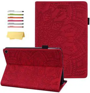 UUcovers 10.1" Case for Kindle Fire HD 10 (Only Fits 11th Gen, 2021 Release) & Fire HD 10 Plus (11th Gen) with Pencil Holder [Auto Sleep/Wake] Folio Stand Embossed Flower PU Leather TPU Cover, Red