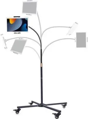 Adjustable Rolling Tablet Stand with Wheels - Heavy Duty Mobile iPad Holder for Desk, Kitchen, Office, or Bed - Compatible with iPad Pro/Air/Mini, Samsung Tablets, Fire HD, 10-13 Inch Devices