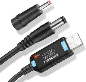 USB DC 5V to 9V Step Up Power Cable(3ft), USB to DC 9V Adapter with Jack 5.5 x 2.5mm(3.5 x 1.35mm), Boost Converter Supports LED Indicator