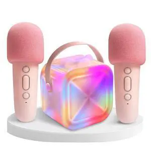Mini Karaoke Machine for Kids,Portable Bluetooth Speaker with 2 Microphones,Music Player for Singing and Party,Ideas Birthday Toys Gifts for Girls Boys 3,4,5,6,7,8,9,10,11,12+ Years Old (Pink)