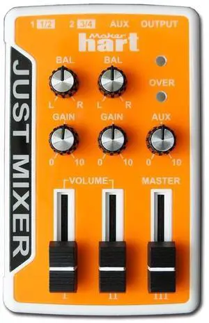JUST MIXER Audio/DJ Mixer - Battery/USB Powered Portable Pocket Audio Mixer w/ 3 Stereo Channels (3.5mm) Plus On/Off Switch (Orange)