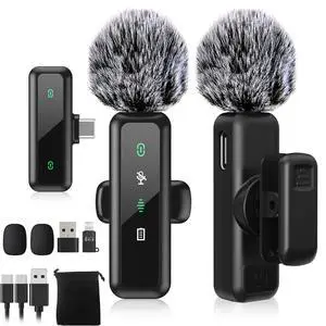 USB C Wireless Lavalier Microphone for iPhone 15/16, Mini Lav LED Mic for Android Phone with Noise Cancelling, Lapel Podcast Microphone for Tiktok Content Creator Video Recording, Streaming, Vlogging