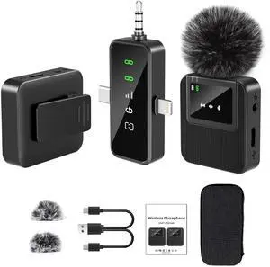 BOYA V3 Combo Wireless Microphone for iPhone/Andriod/PC/Laptop with USB-C/Lightning Port, 36H Battery Life with Charging Case, Noise Canceling Lapel Microphone Wireless Mini Mic for Video Recording