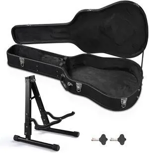 Yescom Electric Bass Guitar Hard Case Wooden Hard Shell & Folding Guitar Floor Stand
