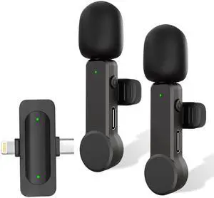 Wireless Lavalier Microphone for iPhone/Android - Dual Mini Noise Canceling Mic with Charging Case(30H), USB-C/Lightning Clip-on Microphone for Video Recording Streaming Podcast Vlogging