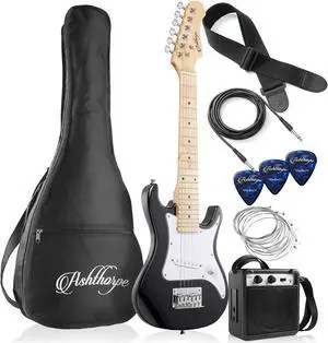 Ashthorpe 30-inch Beginner Electric Guitar Kit with Amplifier (Black), Basic Starter Package w/ Gig Bag, Strings, Strap, Picks