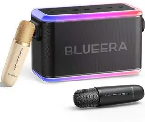 Karaoke Machine with 2 Wireless Microphones,Portable Bluetooth 5.1 Speaker for Adults Kids,Bass/Treble Adjustment,PA System with Remote Control, Lights, Supports TF Card/USB, AUX in,TWS,FM,REC Party