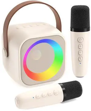 Karaoke Machine for Kids with 2 Wireless Microphones Portable Mini RGB Bluetooth Speaker Birthday Gift Toys for 3 4 5 6 7 8+ Year Old Boys