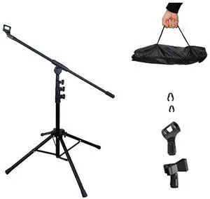 Four legged Floor Microphone Stand. from 24" to 67"Extendable Height with Adjustable Angle. Comes with a storage bag for easy carrying and 2 Mic Clips.for Singing Performance and Podcast rigid tube