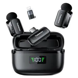 Zwide 2 Pack Clip-On Mini Wireless Lavalier Microphone for USB-C Port Devices with Charging Case, 3 Levels Noise Cancellation & Reverberation Small Lapel Mic for Tiktok/Twitter/X Video Recording M6-C