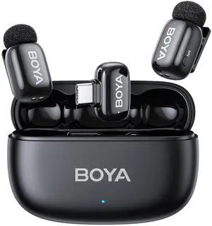 BOYA mini 2 Wireless Lavalier Microphones for iPhone 15/16/17 & Android, AI Noise Cancellation, App Control, 30H Battery Life with Charging Case, Lapel Microphone Wireless for Video Recording Vlogging