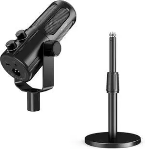 USB/XLR Podcast Dynamic Microphone, Studio Mic Kit with Volume Control, Shock Mount, Pop Filter, Ideal for Vocal, Instruments Recording, Voice Over, Live Streaming (HD300T)