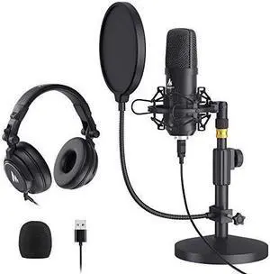 MAONO AU-A04T USB Microphone with AU-MH601 Studio Monitor Headphones Bundle Streaming Podcasting Pack Plug and Play for Computer, YouTube, Music